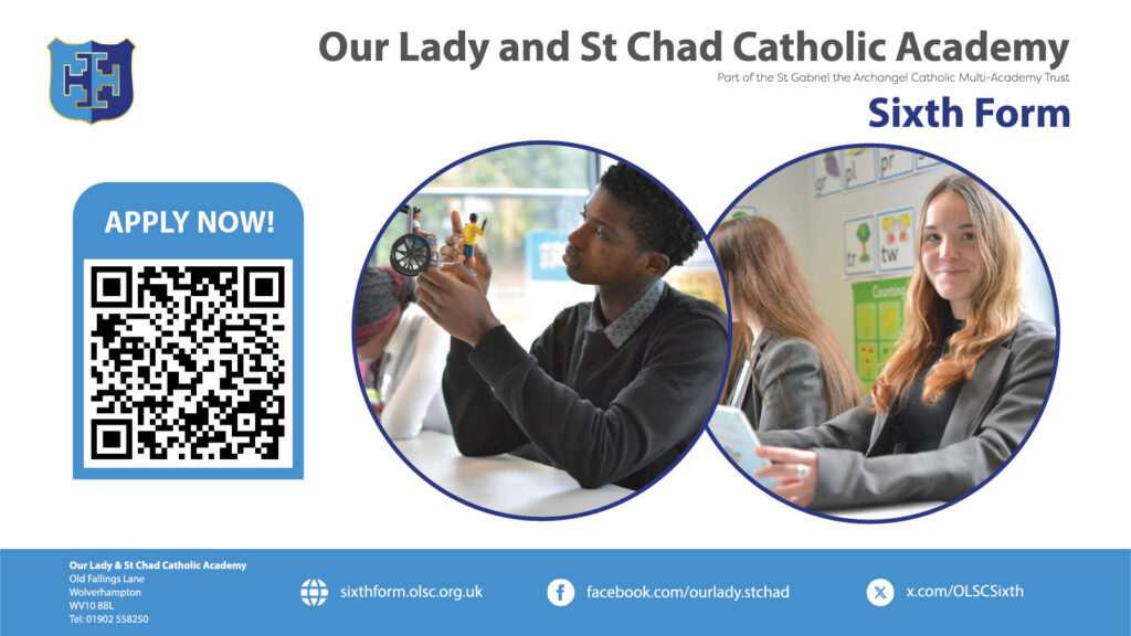Our School mission is underpinned by the Gospel values of, Respect, Truth, Justice, Peace, Charity and Forgiveness. Within these core values, the Academy begins a journey of ‘Demand more… Inspire curiosity… Secure resilience to failure’ to support families in nurturing children to be young adults of integrity and academic excellence. Our patron saint is St Chad, whose life as a monk and his dedication to the faith inspires the whole Community to achieve ‘beyond’ their potential. Our students wear the St Chad Cross on their ties and blazers showing that they too are ‘inspirers of the faith’.